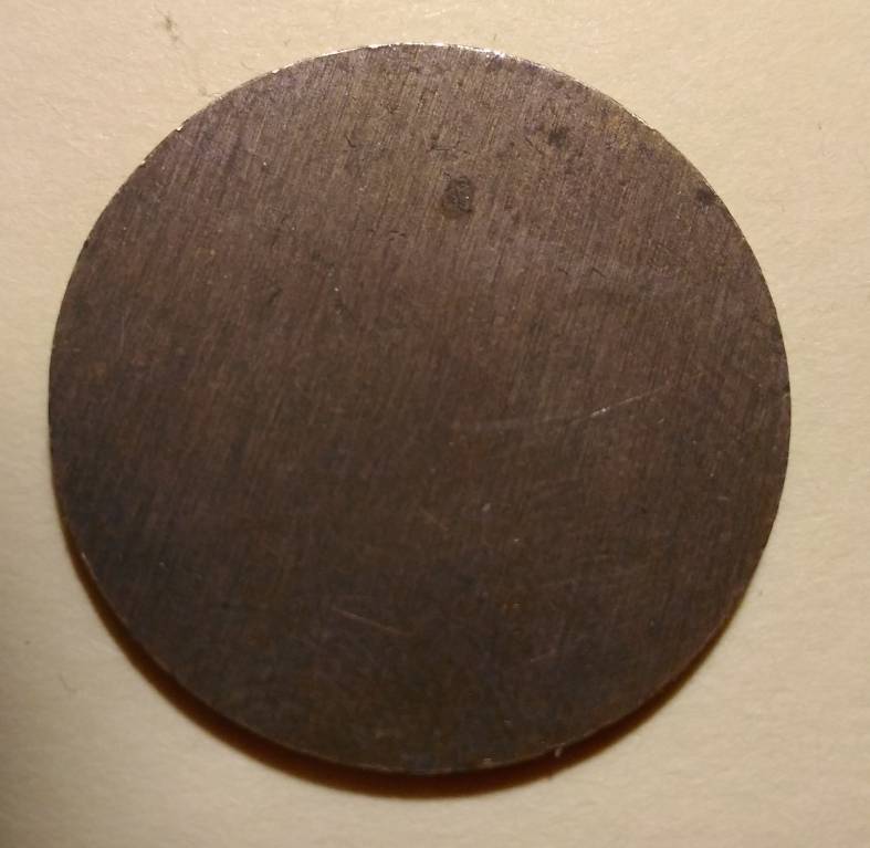 Среди советской мелочи попался сей предмет толщ.1,1 мм , диам. 23,9 , вес 3,97 . Гурт гладкий , без следов обработки