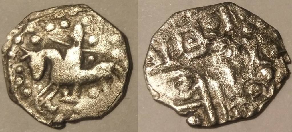 Доброго времени суток. Прошу оценить монету.Определение-В.В.Зайцев о монетах"Карачевского княжества" 14 век. Подражание.Серебро.